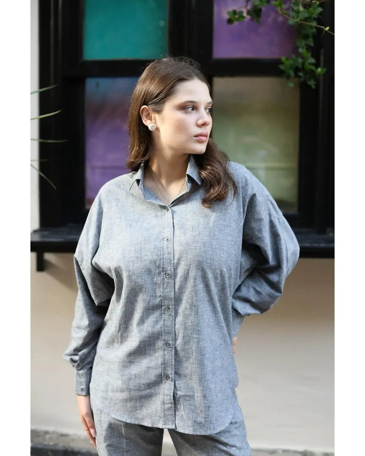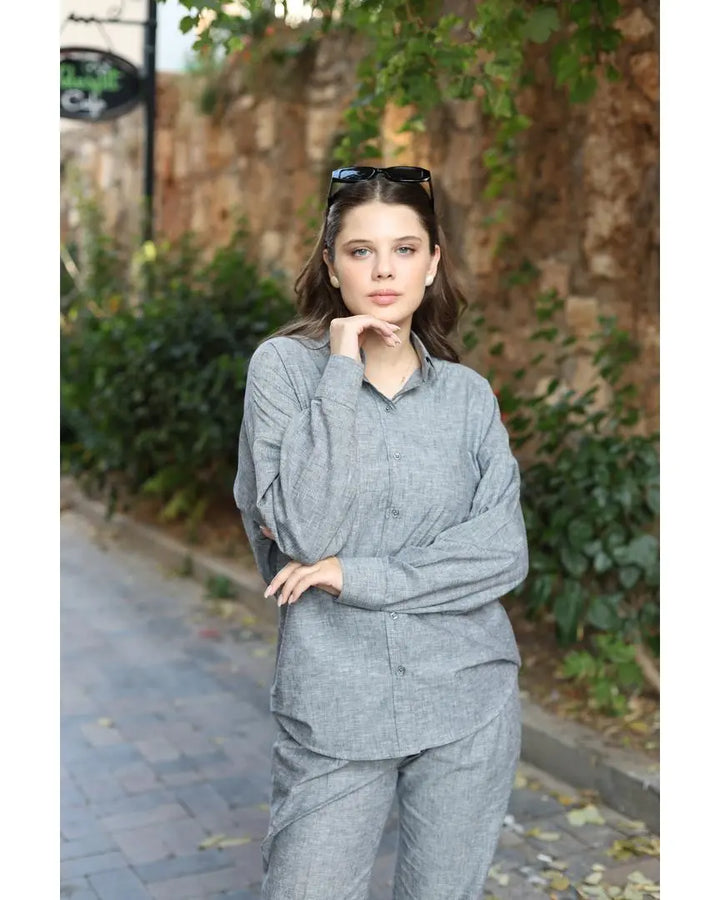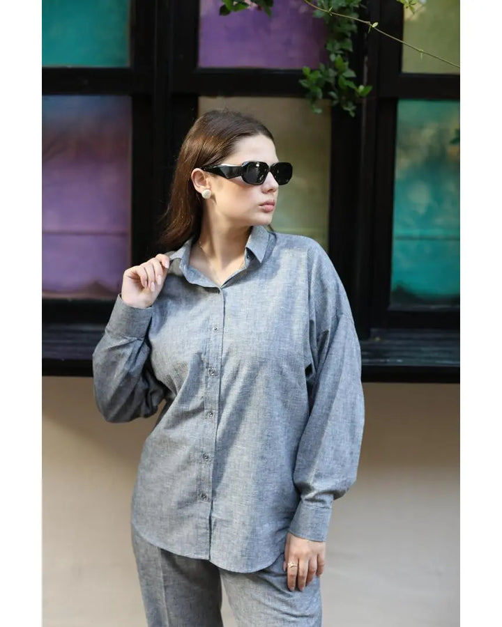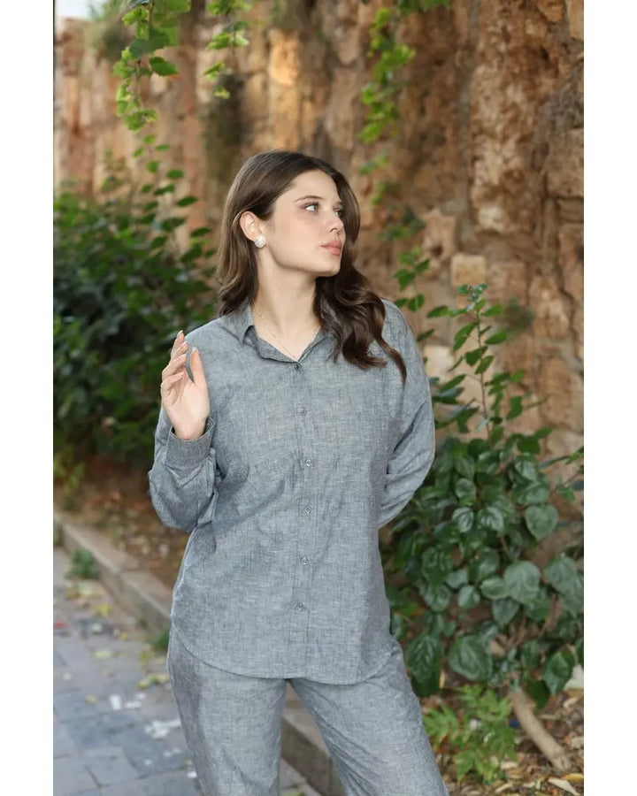 Product Detail: Crafted from premium linen, this shirt offers a breathable, lightweight feel, perfect for all seasons. The cool blue-gray tone adds a sophisticated touch, while the button-down front and classic collar give it a timeless appeal.