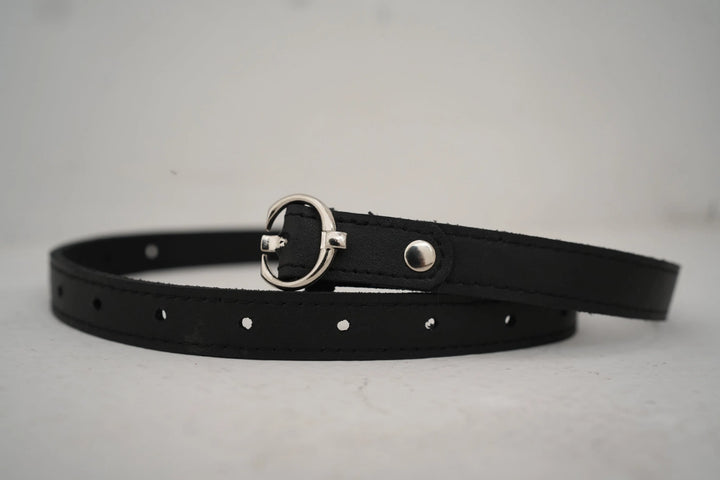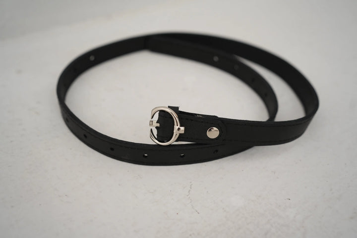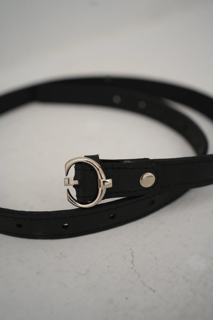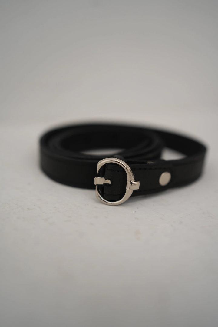 Details: This sleek black belt is the epitome of minimalist style. Featuring a slender profile and a polished silver buckle, it’s designed to add a touch of sophistication to any outfit. Ideal for casual and formal wear alike, this belt is as versatile as it is stylish