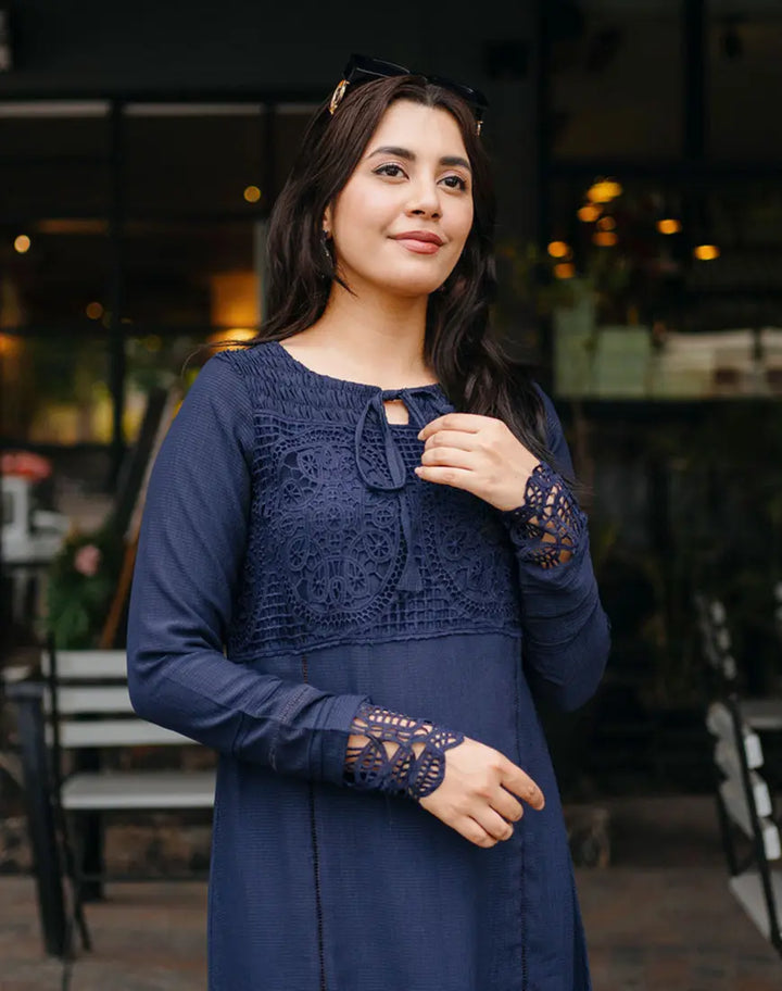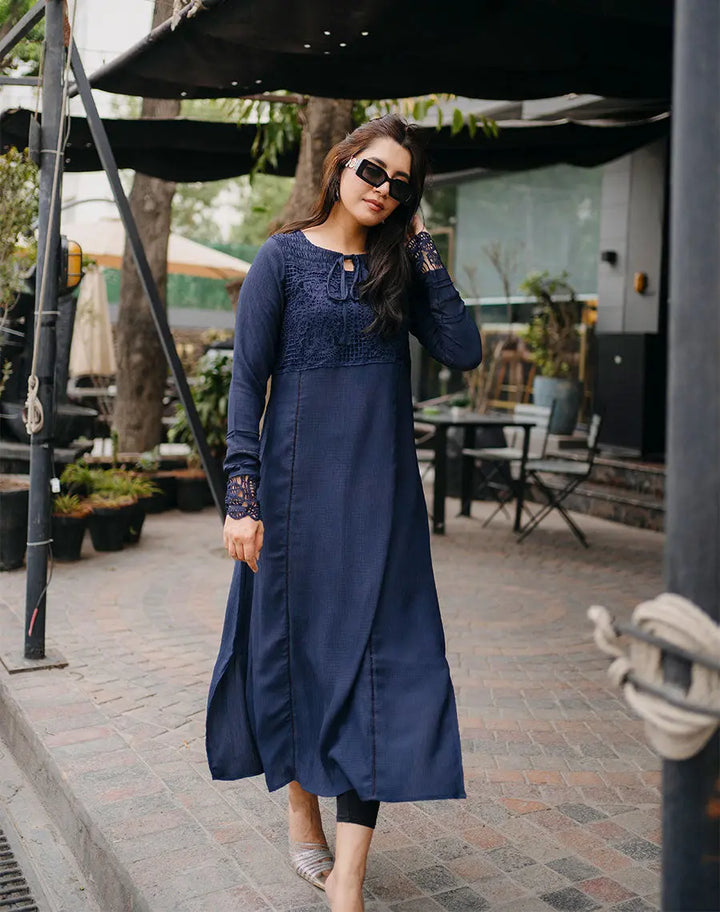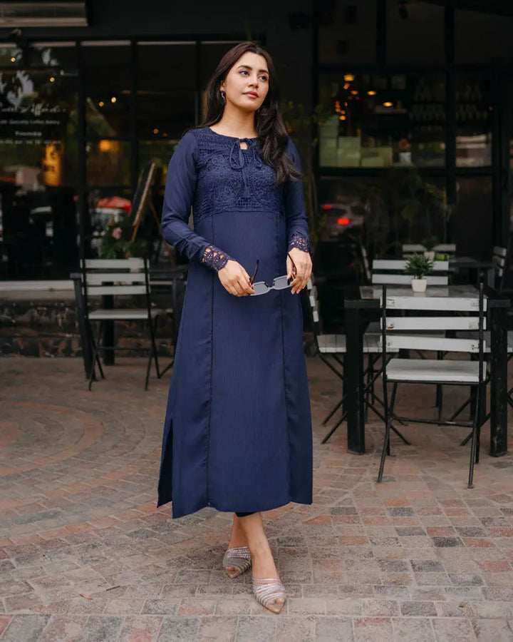 Product Detail: Add a touch of sophistication with our indigo georgette long maxi dress. Its rich color and lightweight georgette fabric ensure you'll feel comfortable and stylish all day long.